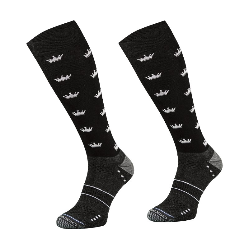 Wysokiej jakości skarpety jeździeckie. Posiadają wygładzone szwy w okolicach palców, dając wysoki komfort użytkowania. Kolejne atuty tych podkolanówek to wzmocnienia w okolicach palców i pięty, podwójny ściągacz utrzymujący skarpetę w odpowiednim miejscu pod kolanem oraz specjalna siateczka- odprowadzająca wilgoć i dająca optymalną wentylację.