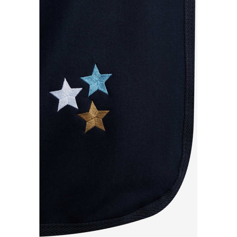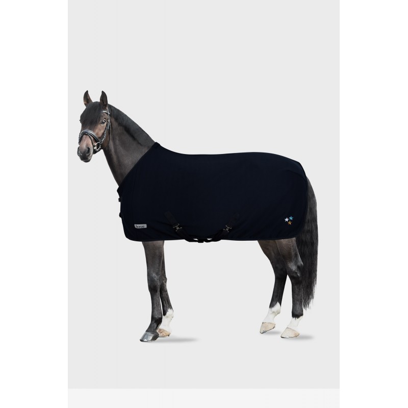 Miękka derka polarowa dla kuca. Uszyta z wyjątkowo miękkiego polaru z czesanym podszyciem, została ozdobiona aplikacją w kształcie gwiazdki. Posiada zapięcie na dwie sprzączki z przodu, pasy krzyżowe pod brzuchem oraz podogonie pozwalają utrzymać derkę na miejscu.