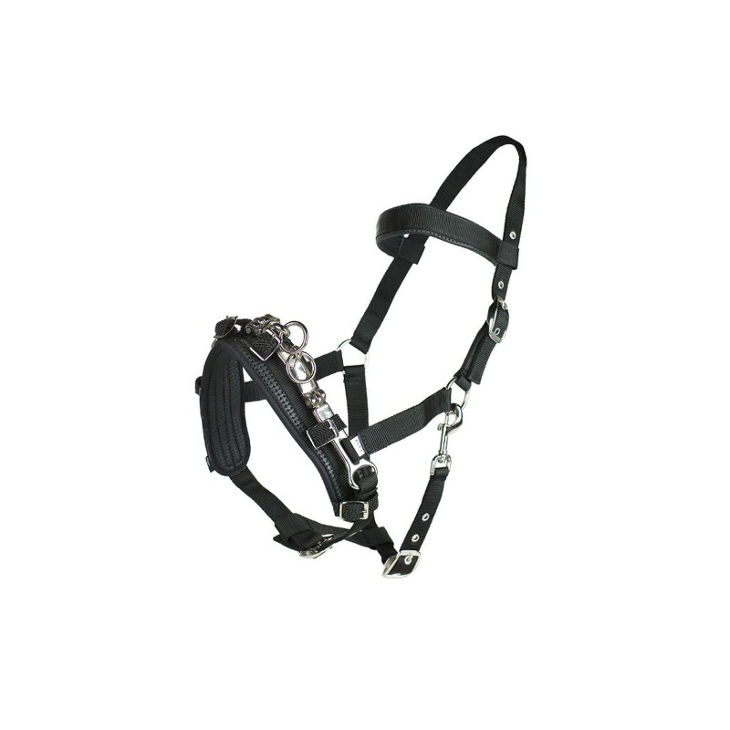 Kawecan wykonany z mocnej taśmy nylonowej, naczółek oraz szeroki nachrapnik podszyty miękkim neoprenem, Potrójna regulacja.