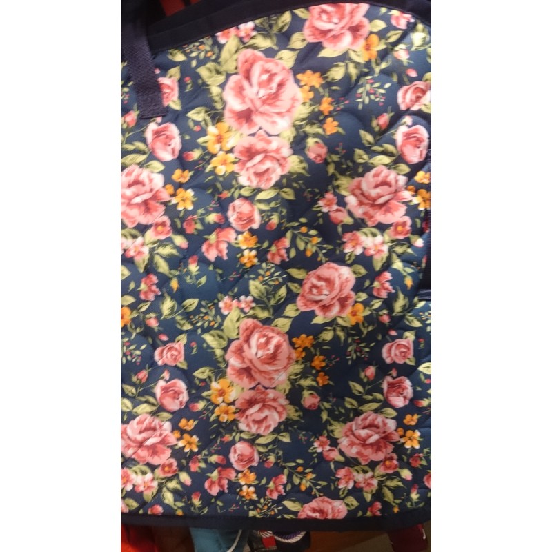 Kolor: granatowy w kolorowe kwiaty z granatową lamówką
