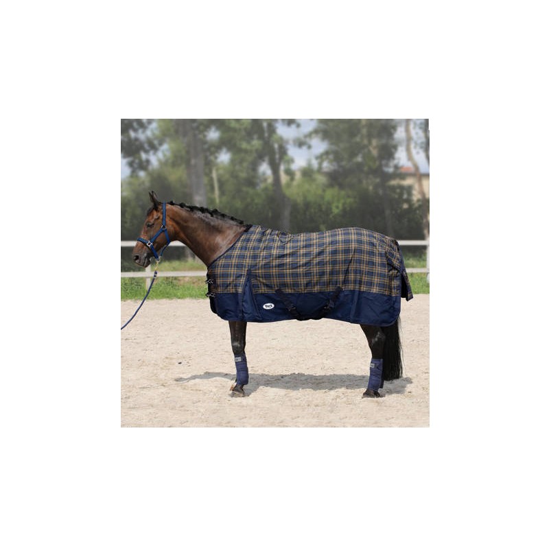 Padokowa derka bez wypełnienia, podszyta polarem Wykonana z wodoodpornego i oddychającego materiału RipStop o gramaturze 600 DEN. Posiada rozcięcia na łopatkach zapewniające swobodę ruchów, z przodu podwójną regulację z możliwością szybkiego zapięcia. Pasy krzyżowe zapobiegające przesuwaniu się derki, odpinane pasy na nogi i klapę na ogon.