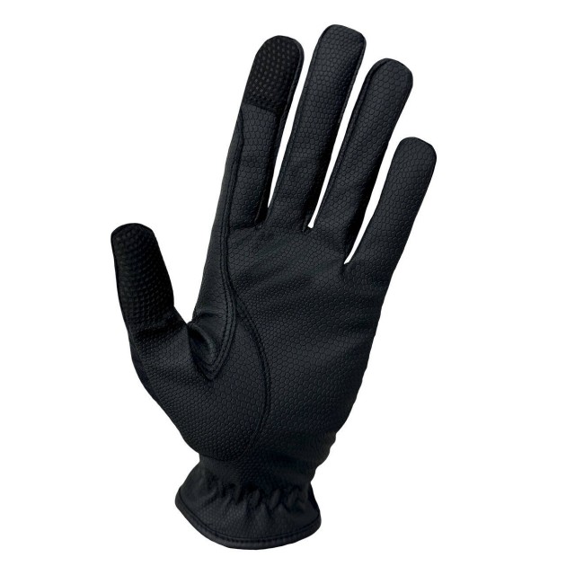 Całoroczne rękawiczki jeździeckie w uniwersalnym, czarnym kolorze. Wierzch wykonano z elastycznej, oddychającej siateczki, natomist dolna część została pokryta imitacją skóry. Umożliwiają korzystanie z ekranów dotykowych.