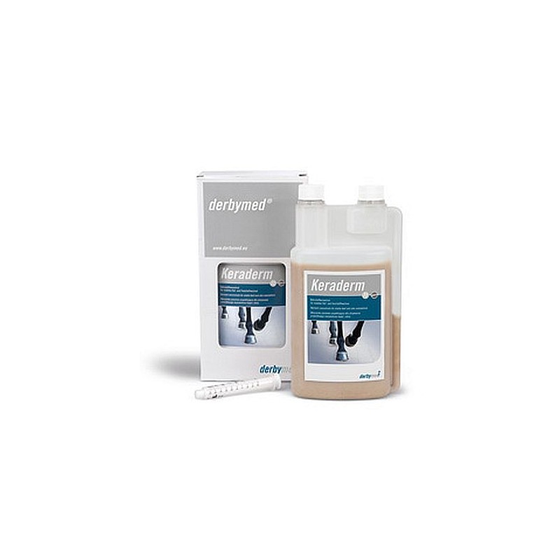 Keraderm zaopatruje konie w biotynę, cynk, organicznie związany mangan i metioninę (zawierającą siarkę). Składniki odżywcze stymulują metabolizm komórek nabłonkowych, rogowych i zapewniają odżywienie skóry, sierści i struktur rogowych. Witamina E i β-karoten jako przeciwutleniacze, wspomagają funkcje układu odpornościowego.