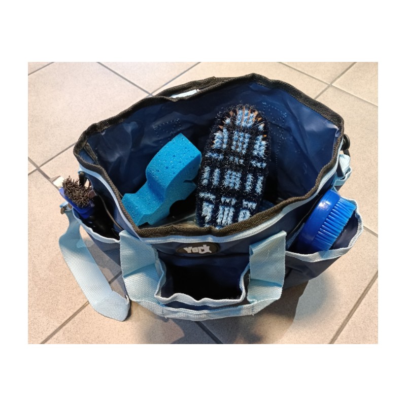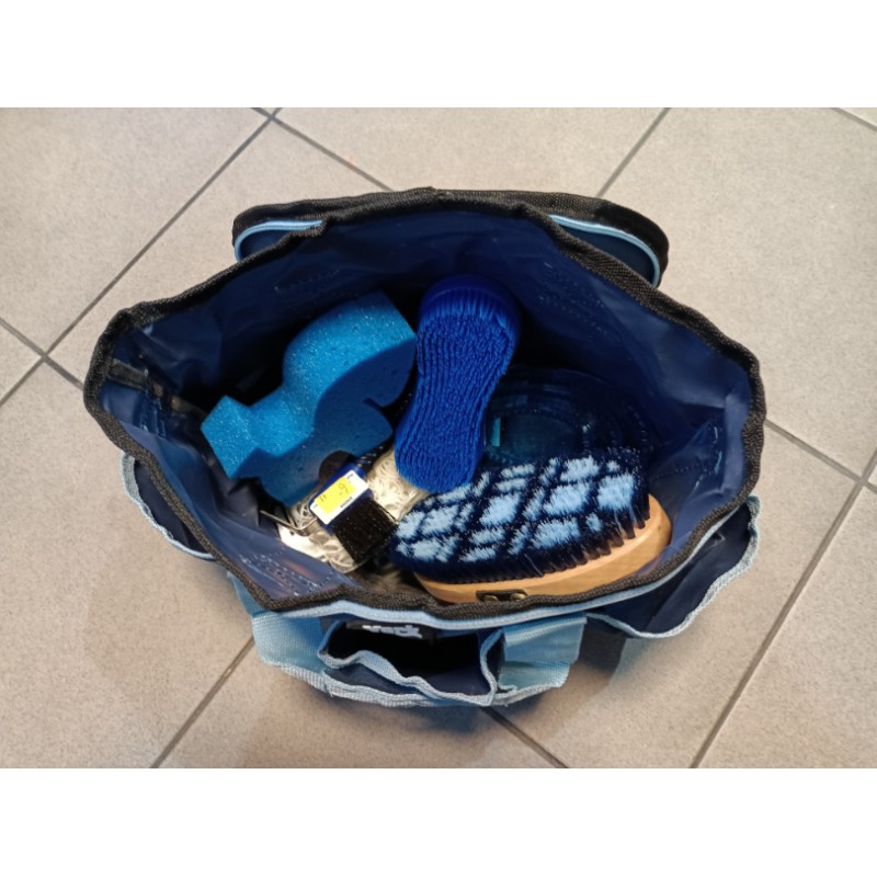 Poręczna i praktyczna torba wyposażona w niezbędne akcesoria do pielęgnacji konia. Świetnie sprawdza się w stajni oraz jako podręczna torba na zawody.