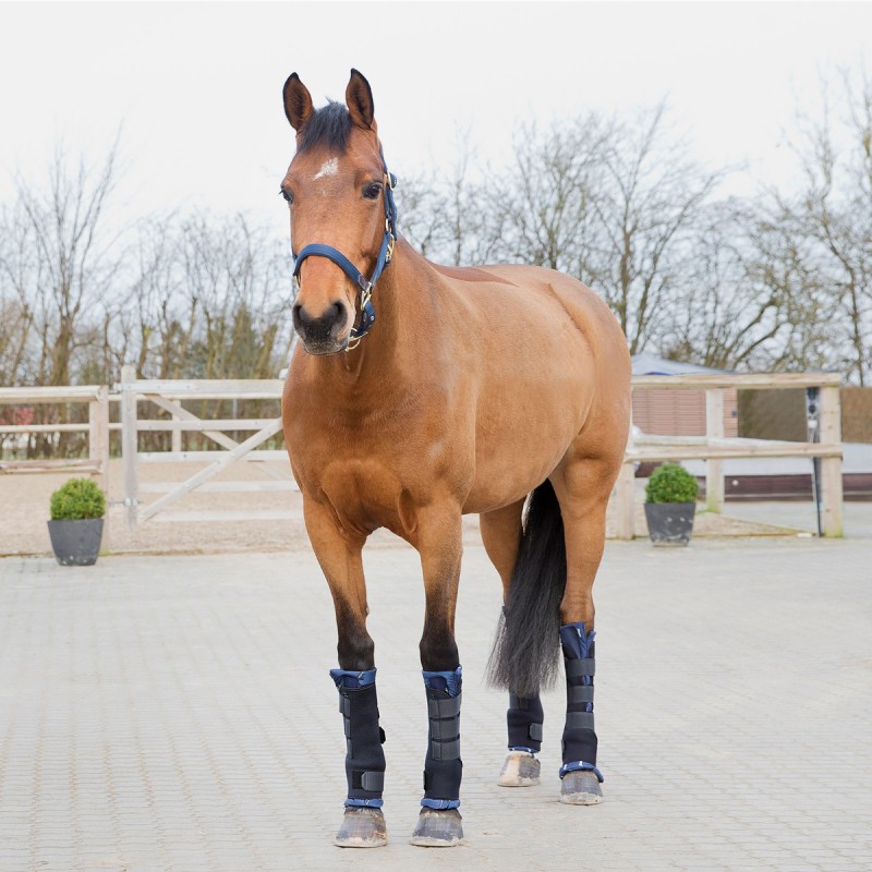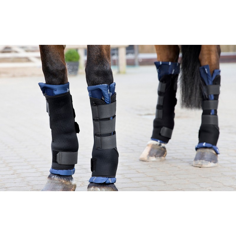 Ocieplające ochraniacze wykonane z mocnego i grubego neoprenu. Zapinane na rzepy. Dobrze podtrzymują nogę. Ocieplenie wewnątrz jest odpinane, aby można je było łatwo wyprać. Komplet zawiera parę na przednie nogi.