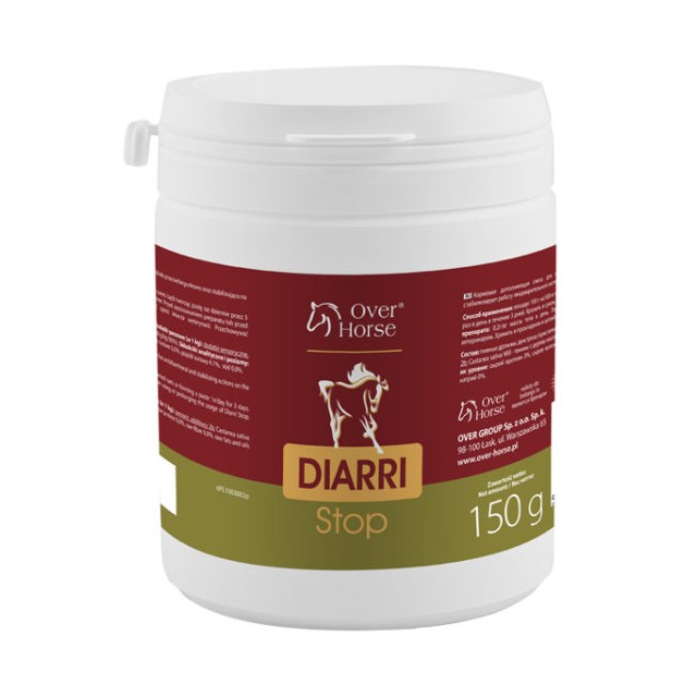 DIARRI Stop działa ściągająco w obrębie przewodu pokarmowego, tworząc cienką nierozpuszczalną warstwę ochraniającą śluzówkę. Hamuje niewielkie krwawienia z naczyń włosowatych, ogranicza przenikanie wody do światła jelit, co przeciwdziała rozrzedzaniu treści pokarmowej. Tworzy kompleks z toksynami bakteryjnymi, wspomagając ich usuwanie z przewodu pokarmowego. Ponadto wykazuje działanie aseptyczne. Zmniejsza ryzyko występowania zaburzeń trawiennych z objawami biegunki. Działa stabilizująco na układ pokarmowy koni.