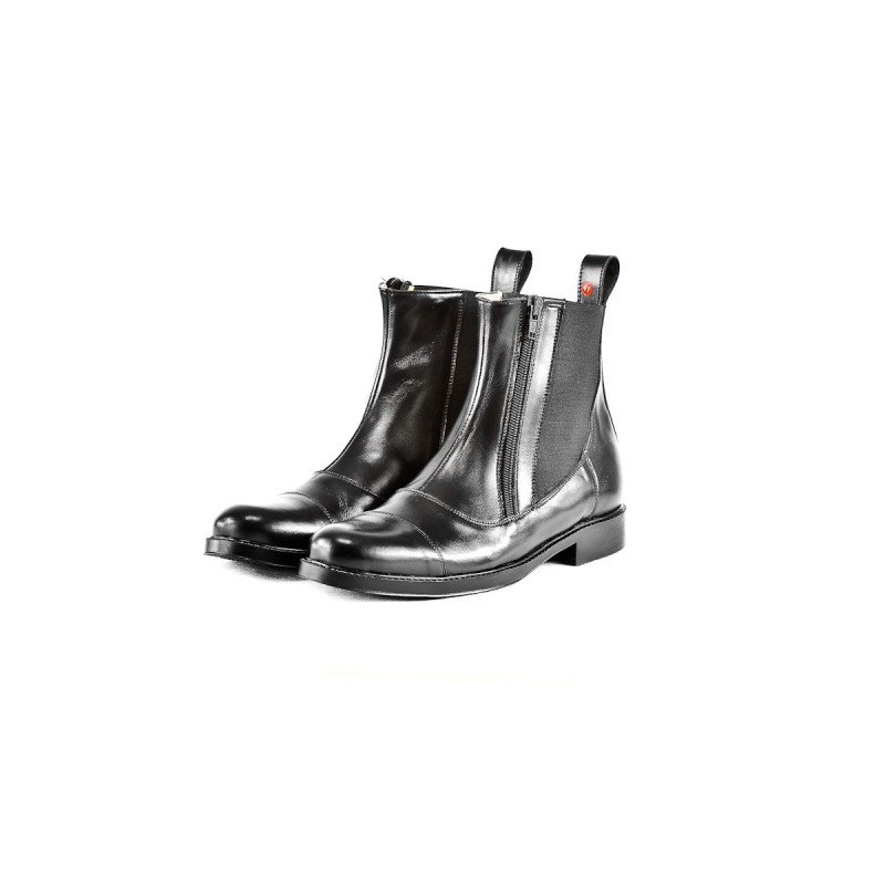 Klasyczne sztyblety jeździeckie firmy PBK. Zapinane na zamek z boku. Po bokach elastyczne wstawki dzięki, którym łatwiej wsunąć sztyblety na stopę. Wykonane z bardzo odpornej i wytrzymałej skóry bydlęcej, w środku wyłożone miękką podszewką ze skóry naturalnej. Posiadają antypoślizgową podeszwę.
