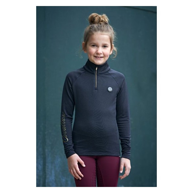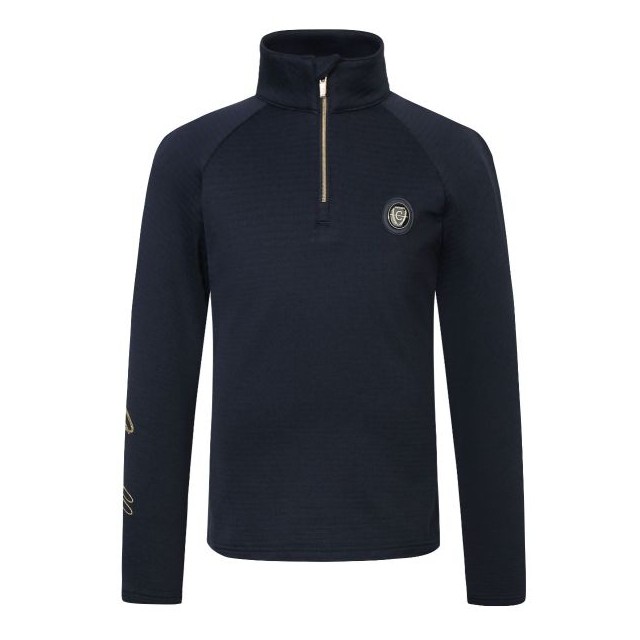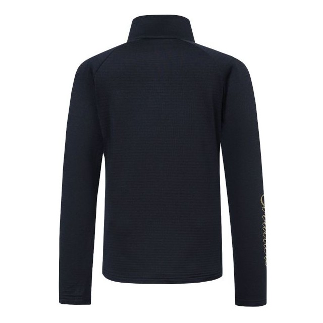 Bluzka wykonana z wysokiej jakości technicznego, ekspresowo odprowadzającego wilgoć na zewnątrz oraz szybko schnącego materiału. Zapewnia doskonały komfort termiczny podczas intensywnych treningów. Podszyta przyjemnym dla ciała, puszystym i zapewniającym ciepło materiałem o strukturze wafelka. Idealne dopasowuje się i pięknie podkreśla figurę, nie krępując przy tym ruchów. Wyższy kołnierzyk zapinany na suwak chroni przed wiatrem. Posiada duży napis na rękawie oraz naszywkę z logo firmy.