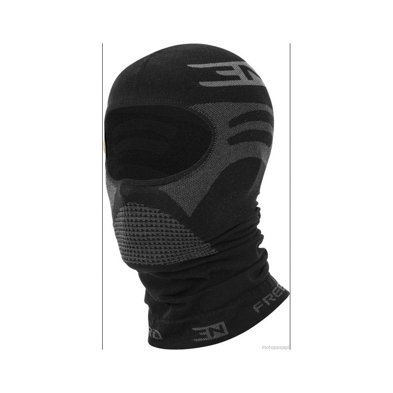 Nowością jest trójwymiarowy splot 3D materiału ułatwiający oddychanie i zapewniający bardzo szybkie odprowadzenie wilgoci. W okresie zimowym zapobiega to zamarzaniu pary wodnej w okolicy ust i nosa. Dzięki bardzo dużej elastyczności możliwe jest używanie kominiarki w 3 wariantach. Warstwa wewnętrzna materiału (polipropylenowa) - dzięki zastosowaniu jonów srebra (STOP BAKTERIA) zapobiega rozwojowi bakterii, redukuje nieprzyjemne zapachy, zapewnia higieniczną świeżość. Podczas użytkowania, odprowadza powstałą wilgoć do warstwy zewnętrznej.