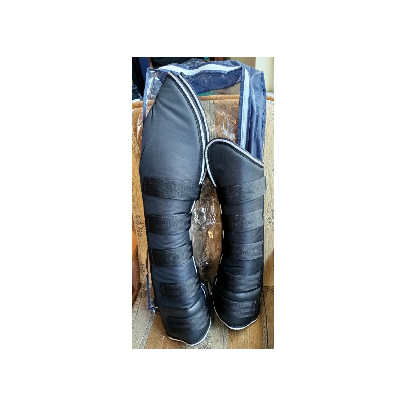 Ochraniacze transportowe, zapinane na bardzo mocne rzepy. Na zewnątrz tkanina poliestrowa. W środku bawełna. Wykończone skórą ekologiczną.