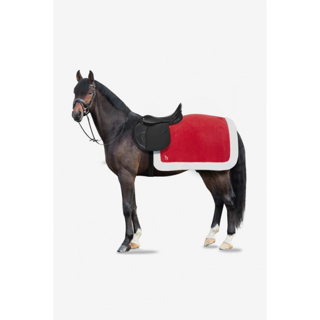 Świąteczna derka treningowa wykonana z polaru będzie stanowić wesoły akcent podczas grudniowych treningów. Wykończona sztucznym białym futerkiem. Łatwo mocuje się ją do siodła za pomocą pasków.