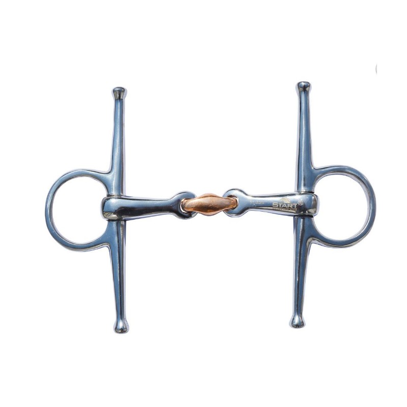 Wędzidło pełne z wąsami wykonane ze stali szlachetnej. Podwójnie łamane z łącznikiem miedzianym. Wędzidła tego typu pomagają w pracy z młodymi końmi, pomagają nadać im kierunek, zapobiegają przeciąganiu wędzidła na jedną stronę, pomagąją więc również mniej doświadczonym jeźdźcom