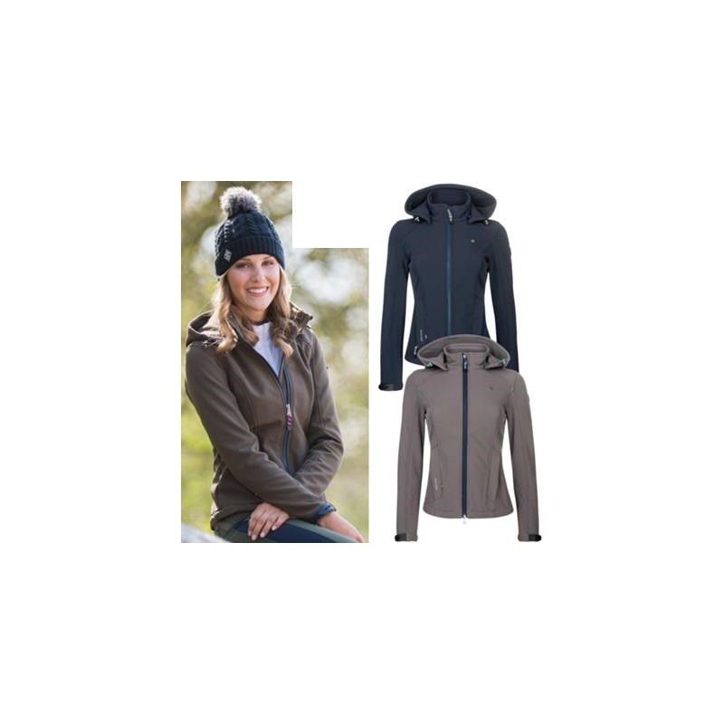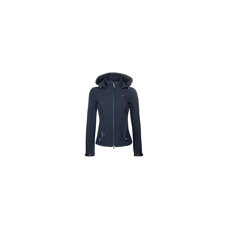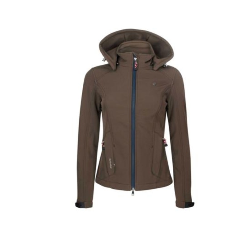 Sportowa damska kurtka wykonana z wysokiej jakości materiałów softshell, miła w dotyku, oddychająca, wodoodporna. Z boku dwie kieszenie na suwak. Odpinany kaptur. Z regulowanymi mankietami.