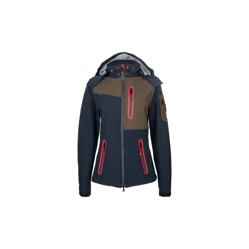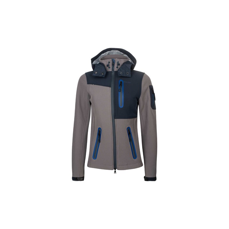 Sportowa kurtka wykonana z oddychającego wiatro- i wodoodpornego materiału Softshell. Posiada dwie praktyczne kieszonki zapinane na zamek błyskawiczny, chowany w kołnierzu odpinany kaptur oraz regulowane rękawy.